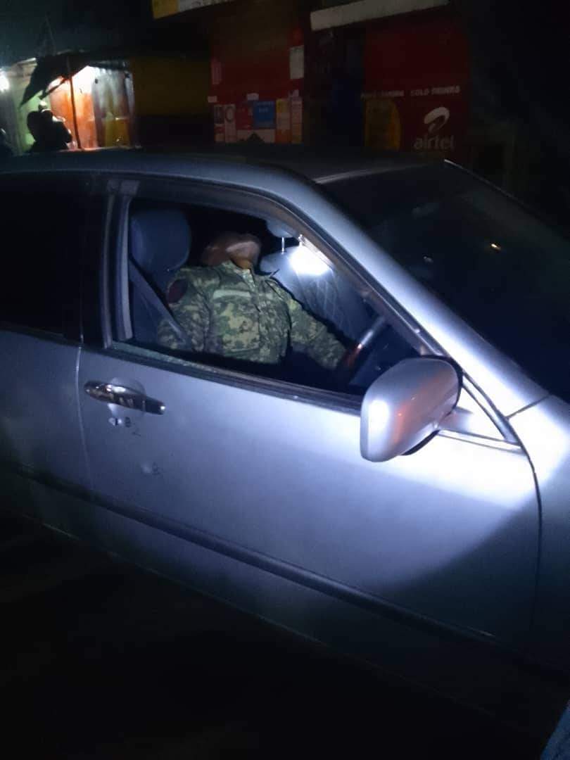 Mmotoka eyabaddemu gwe balumiriza okuwamba eyabadde mu byambalo ebyefaananyiriza eby'amagye.