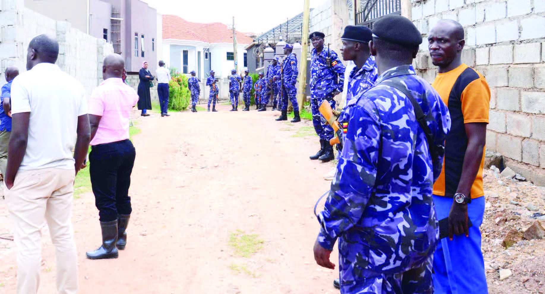 Abagagga bano bassaayo okwewozaako kwabwe mu kkooti, naye baagaana okweyanjula ate ne bagenda mu maaso n’okuzimba, ekyawalirizza omuwaabi wa Gavumenti okulagira bakwatibwe. Poliisi yagenze ku ttaka naye teri mugagga yasangiddwaawo era abakozi abasukka mu 5 be baakwatiddwa bayambeko poliisi mu kutegeera bannannyini bizimbe bye bakolako.