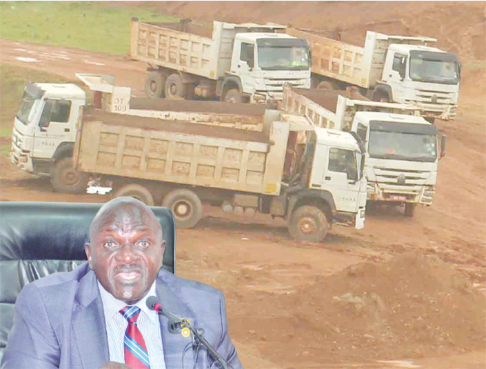 Ebimotok ebisomba ettaka mu kukola oluguudo luno. Ku kkono ye minisita Katumba Wamala.