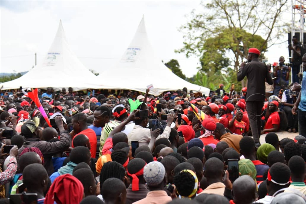 National Unity Platform (NUP) presidential candidate Robert Kyagulanyi Ssentamu addressing his supporters in Namayingo district. (Photos by Ponsiano Nsimbi)