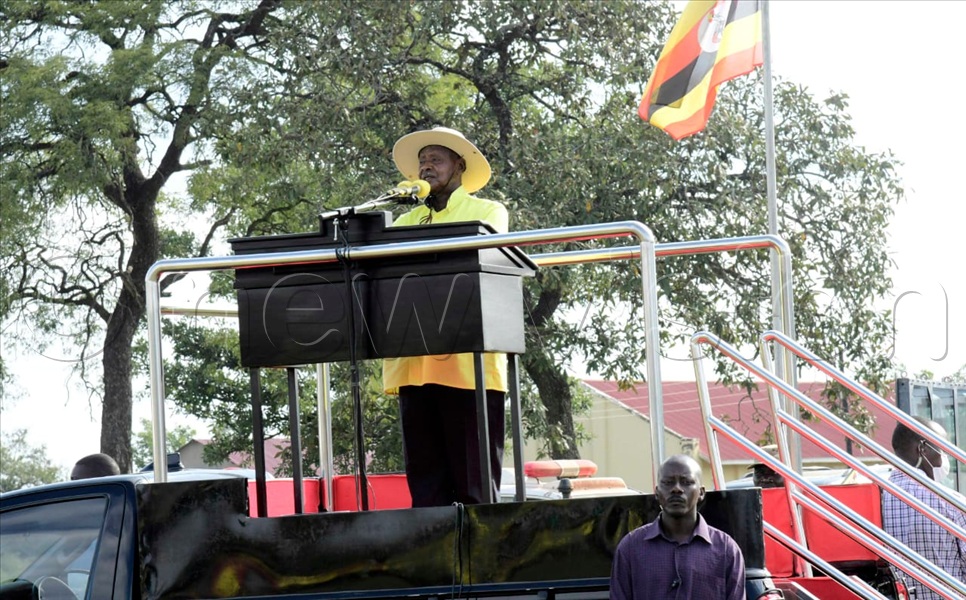 OTUKE - On arrival at Orum Primary School playground in Otuke town, Otuke district, President Yoweri Museveni and the National Resistance Movement (NRM) candidate told the people who gathered that if re-elected, his government will never make the mistake of using the money from selling oil from the Albertine region to import luxury goods like whisky, wigs and perfumes.