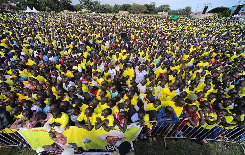 President Yoweri Museveni told the people who gathered that if re-elected, his government will never make the mistake of using the money from selling oil from the Albertine region to import luxury goods like whisky, wigs and perfumes. (Credit: Eddie Ssejjoba)